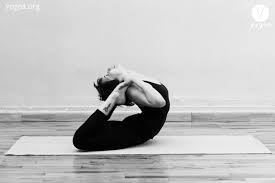 6. Pigeon and Royal Pigeon: These are fully puffed-up Pigeon poses (not one of the One-Legged Royal Pigeon variations). These are big heart openers, so if they are not in your practice modify with the prep pose. For Royal Pigeon, set yourself up for Floor Bow (prep pose) and then bring your head and feet together. For Pigeon, come into Camel Pose and then, if this variation is in your practice, work your head and elbows down to the floor behind you. Bind off with the feet and shins.